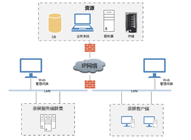 柜员电脑需安装录屏客户端软件【瘦终端需要在本地配置存储】。录屏服务端支持群集模式部署,客户端-服务端连接支持主备冗余。Web管理终端可进行系统参数管理和文件管理,支持录音&屏幕&视频文件的同屏播放和质检。