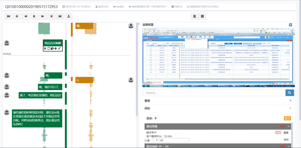 实体门店录屏、监屏是最新发布的柜面屏幕采集与监控产品,可与柜面叫号机或者后台业务系统通过接口整合,实现基于业务的按需柜面屏幕监控、录制和调听。同时,通过与ISCM质检产品整合,实现了对柜面服务交互合规审查和柜员服务质量质检,在“双录”基础上增加了屏幕交互数据作为记录补充,让企业满足合规监管需求的同时,更为全面地掌握柜面服务状态和质量、及时发现和解决问题。